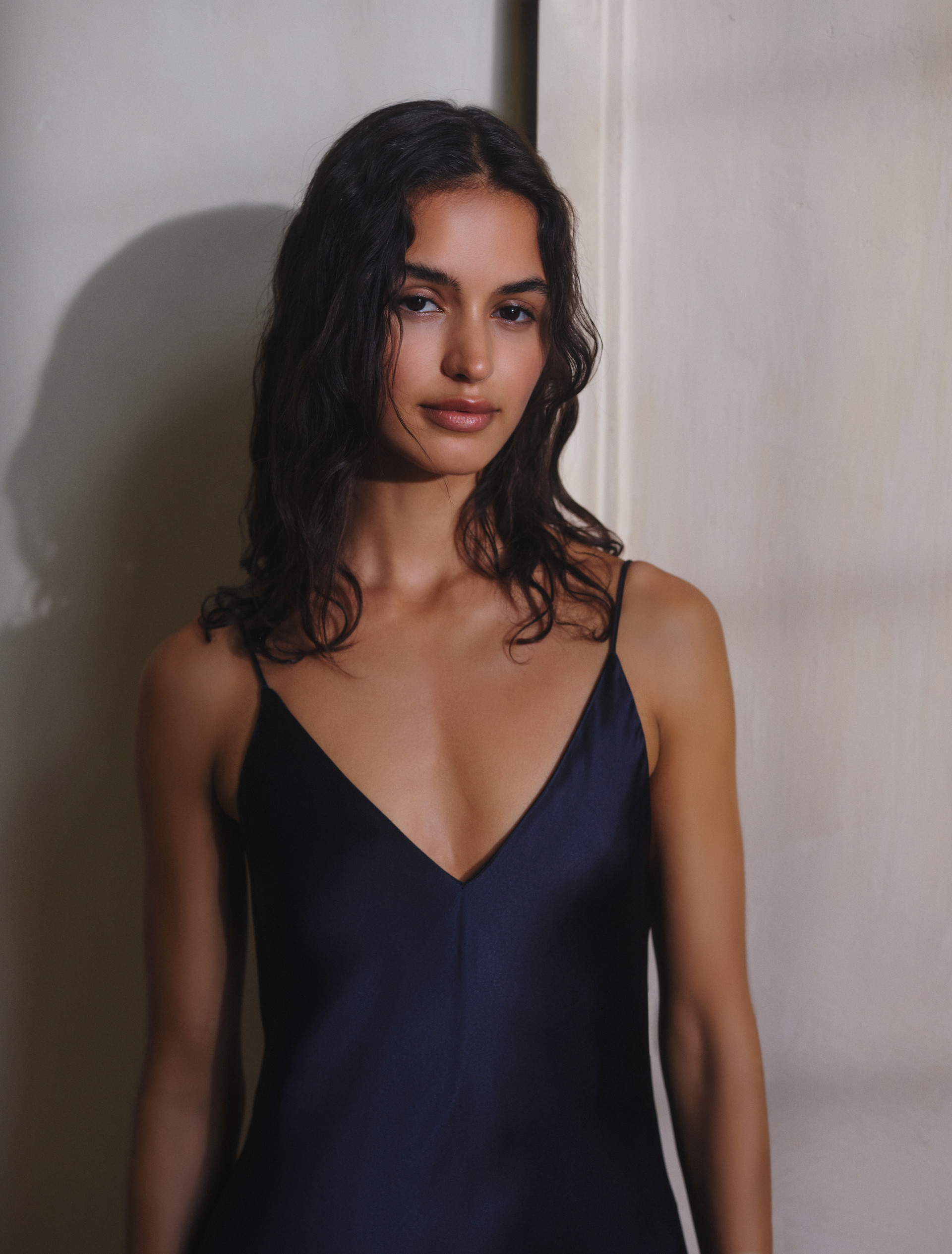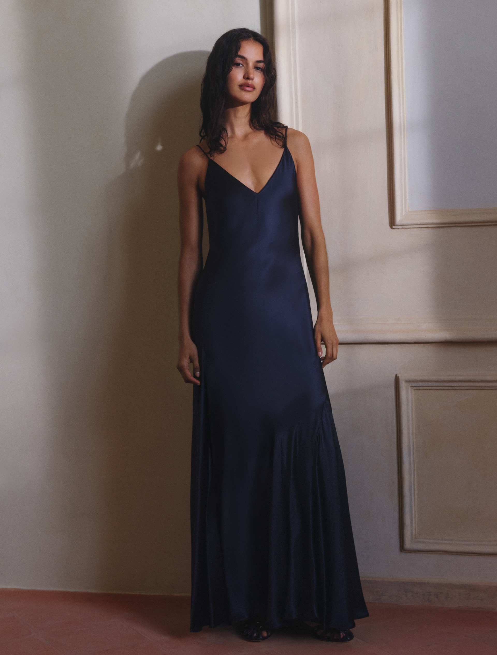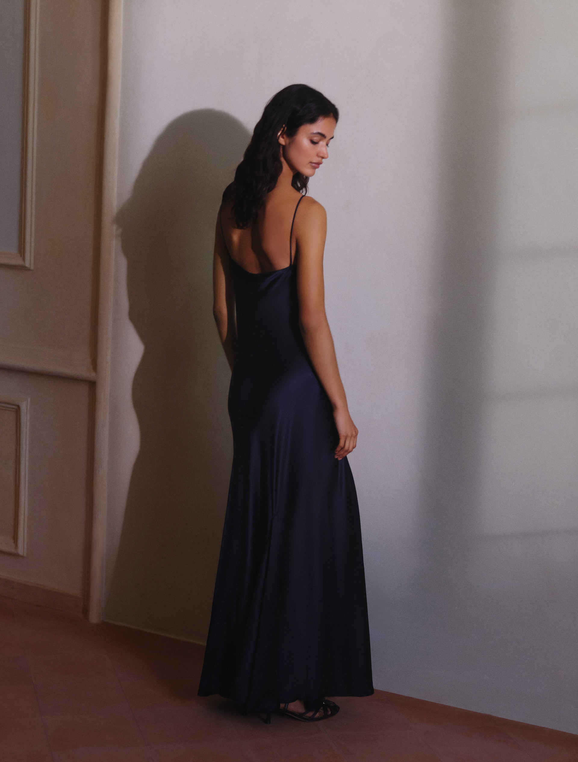 - Abito in raso leggero di misto viscosa con parziale fodera in crêpe de Chine