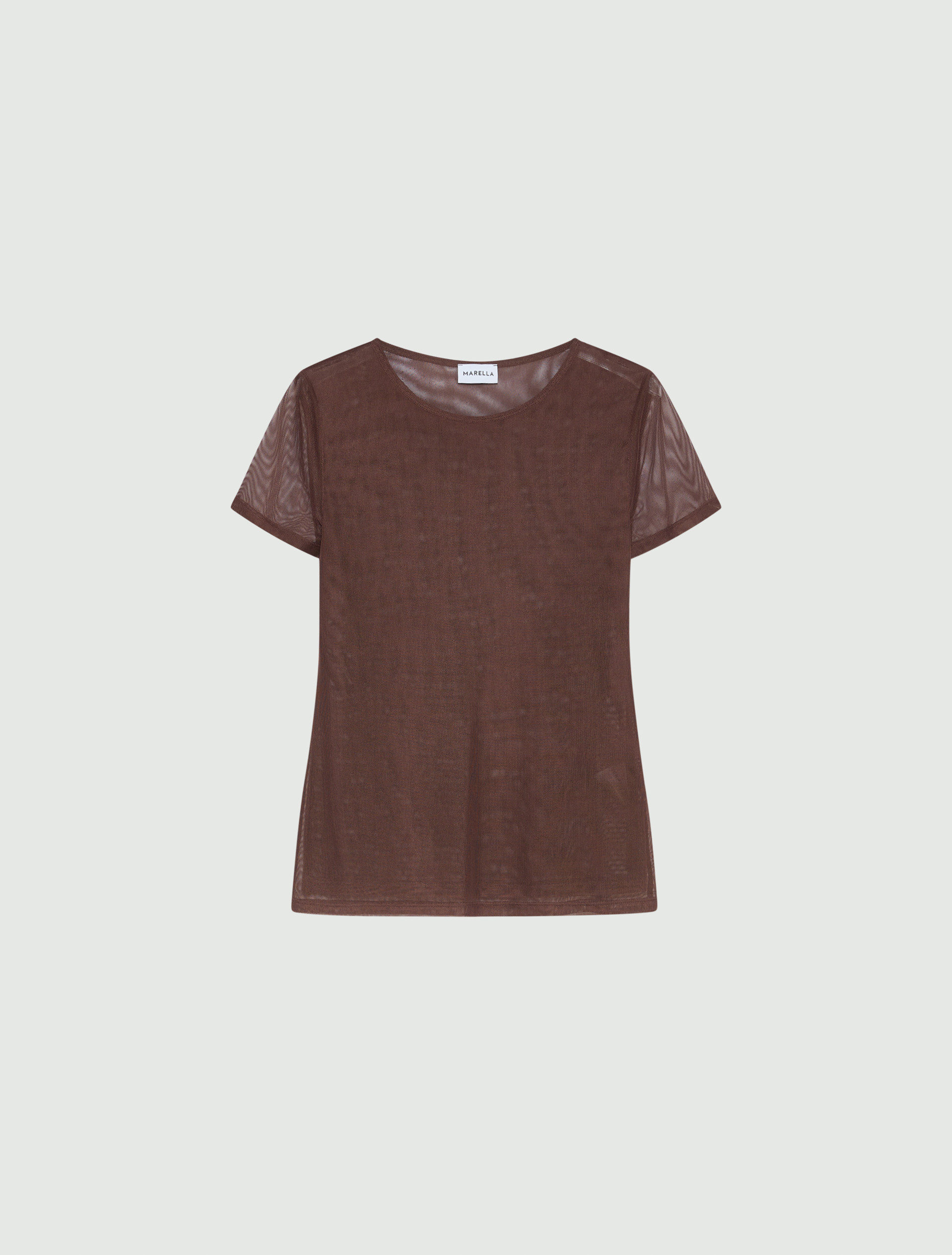 T-shirt in tulle stretch - MARRONE - Marella - 4